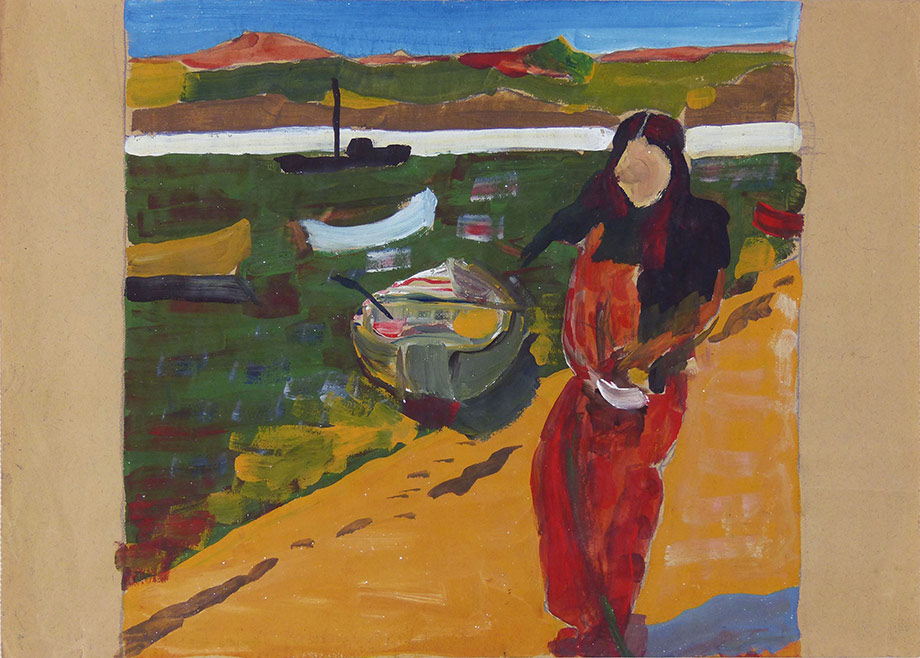 "Strandwanderung", 1958. Gouache auf Papier, 33x23cm.